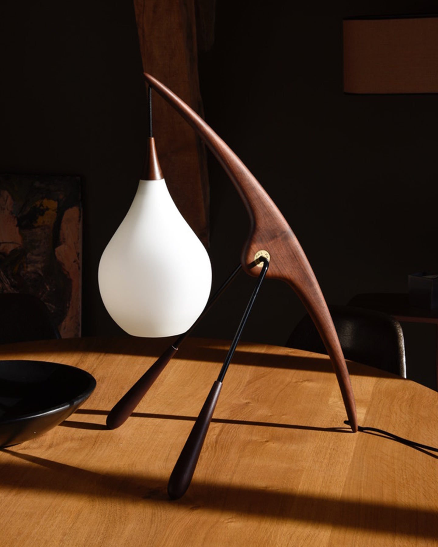 Puisant dans l’ADN de Rispal, ce luminaire réinterprète les lignes emblématiques de la Mante Religieuse, dessinée en 1950. On y retrouve l’équilibre subtil entre courbes tendues et légèreté visuelle, ainsi que ce jeu délicat de proportions qui évoque le mouvement et la grâce de l’insecte dont elle porte le nom.